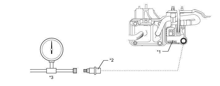 (b) Connect an EVAP tester pump hose to the adapter, and pressurize the cap to 3.2 to 3.7 kPa-g (24 to 28 mmHg-g) using the EVAP tester pump.