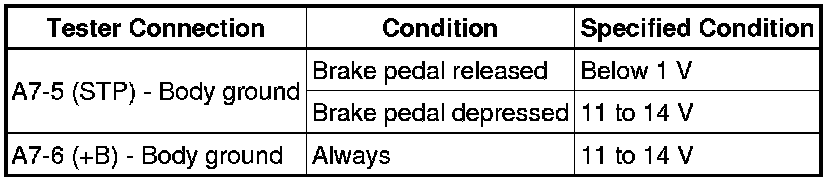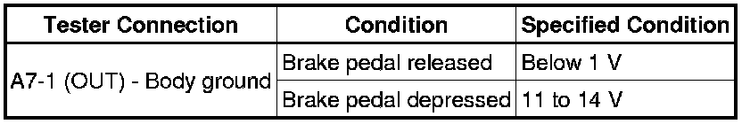 If the result is not as specified, the stop light control ECU assembly may have a malfunction.