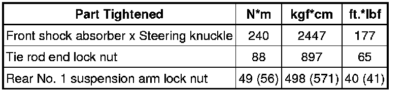 SPECIFICATIONS: ALIGNMENT / HANDLING DIAGNOSIS: TORQUE SPECIFICATIONS