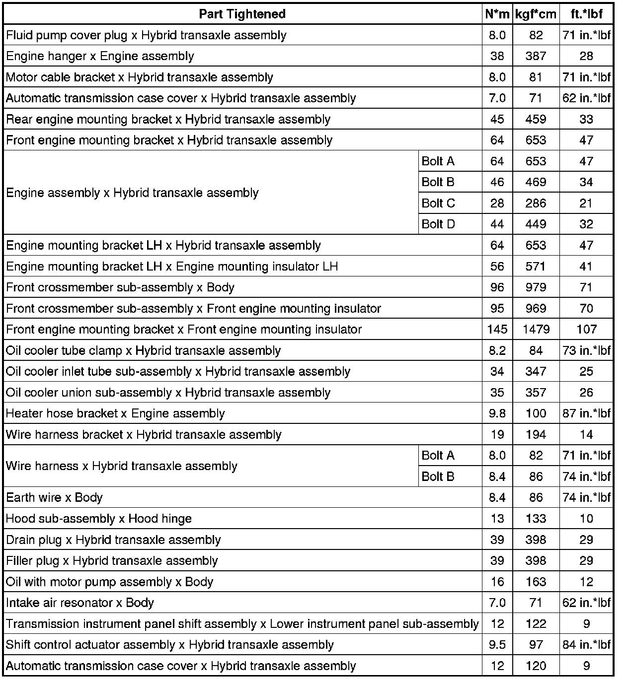 SPECIFICATIONS: P311 HYBRID TRANSMISSION / TRANSAXLE: TORQUE SPECIFICATIONS