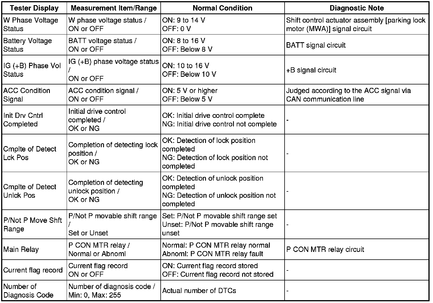 * Some Data List values may vary significantly if there are slight differences in the environment in which the vehicle is operating when measurements are obtained. Variations may also occur due to aging of the vehicle. Due to these considerations, it is not always possible to provide definite values to be used for judgment of malfunctions. It is possible that a malfunction may be present even if measured values are within the reference range.