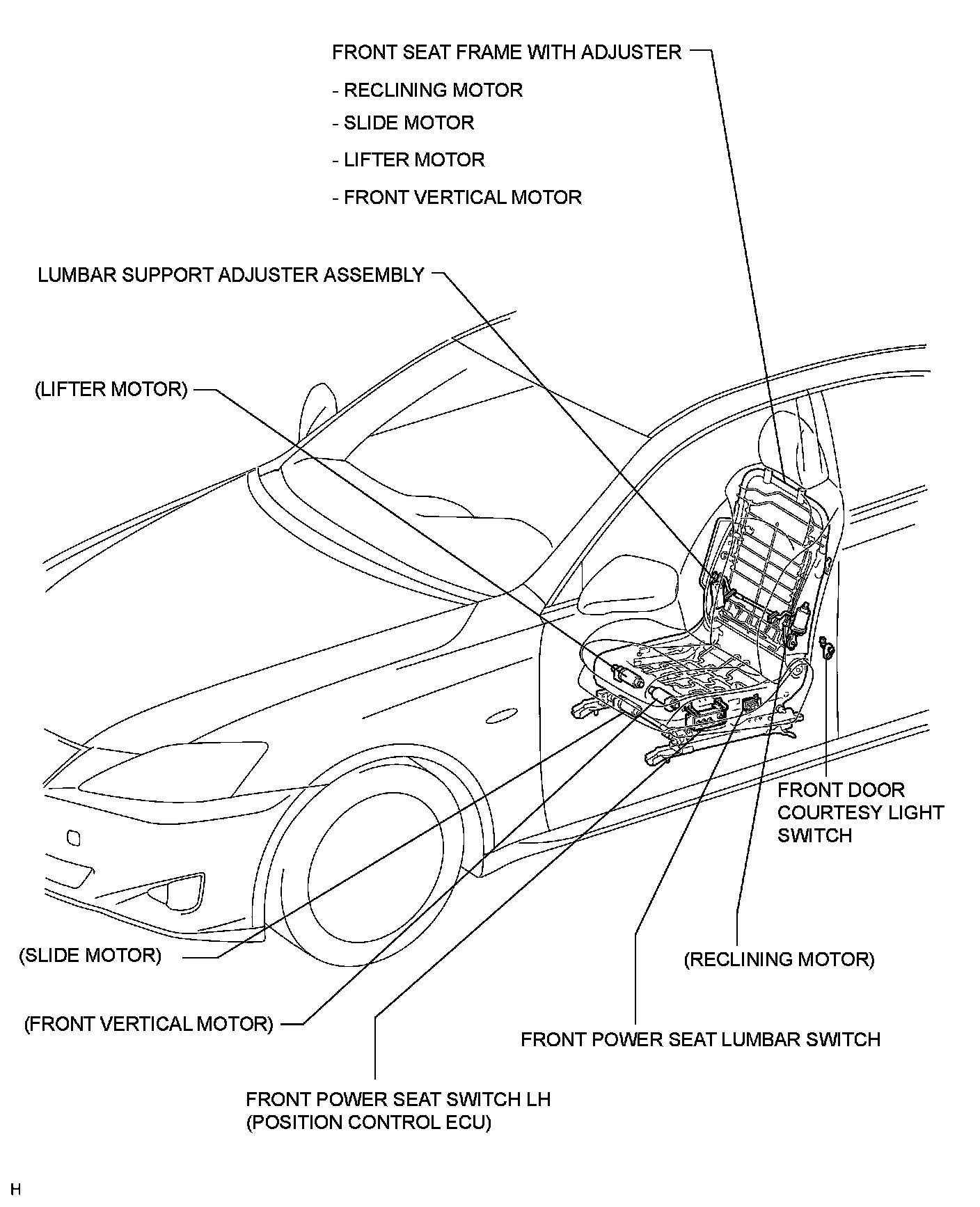 SEAT: FRONT POWER SEAT CONTROL SYSTEM (w/ Seat Position Memory System): PARTS LOCATION