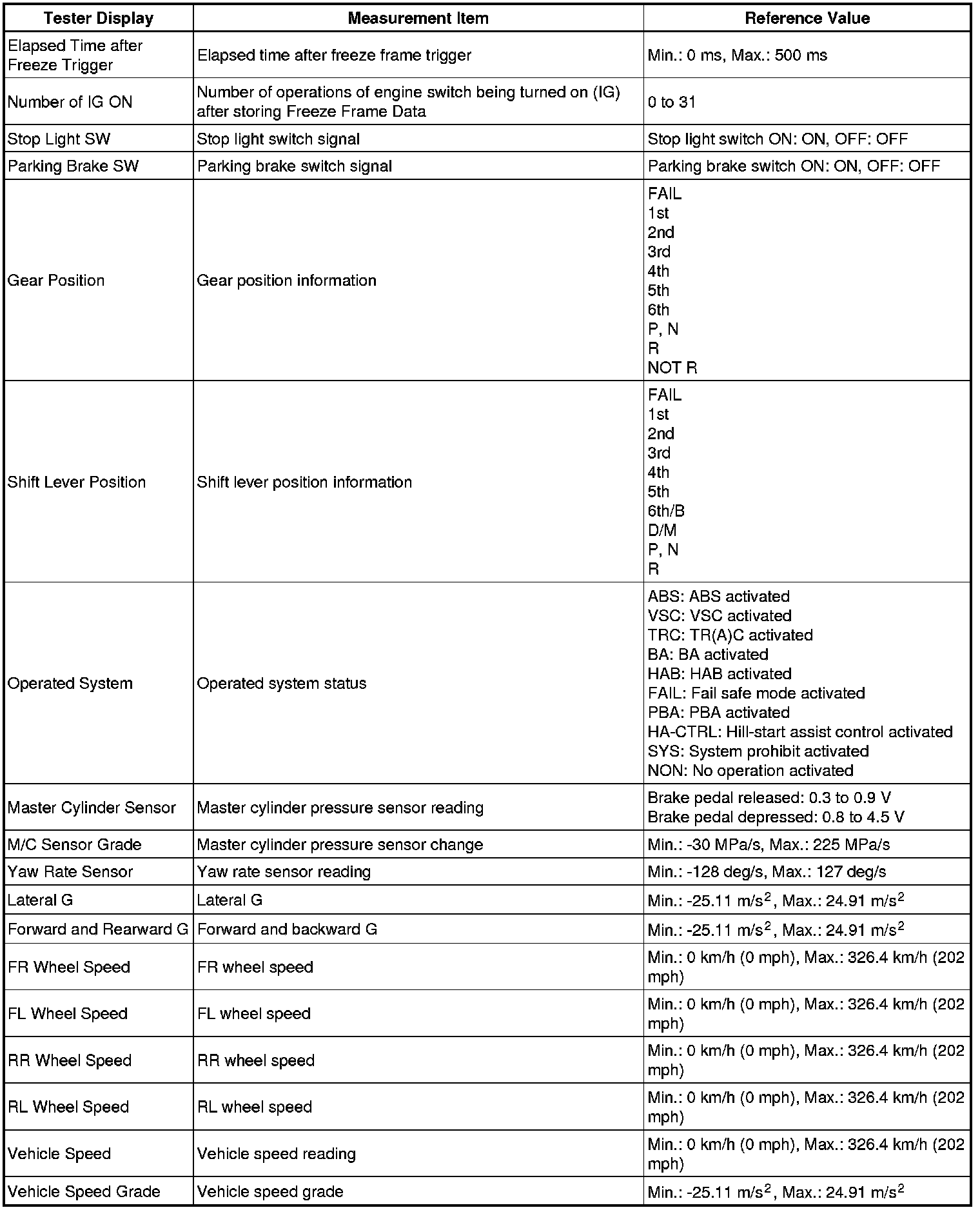 BRAKE CONTROL: VEHICLE STABILITY CONTROL SYSTEM: FREEZE FRAME DATA