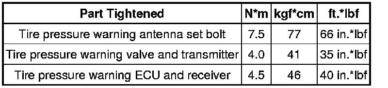 SERVICE SPECIFICATIONS: TIRE AND WHEEL: TORQUE SPECIFICATIONS
