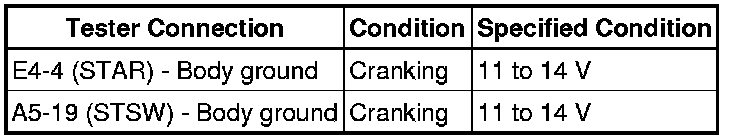 (a) Measure the voltage according to the value(s) in the table below while cranking the engine.