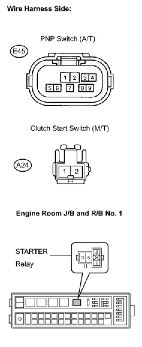 (a) Check the harness and the connectors between the park/neutral position switch and the starter relay.