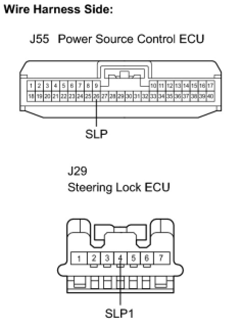 NG -- CHECK WIRE HARNESS (POWER SOURCE CONTROL ECU - STEERING LOCK ECU)