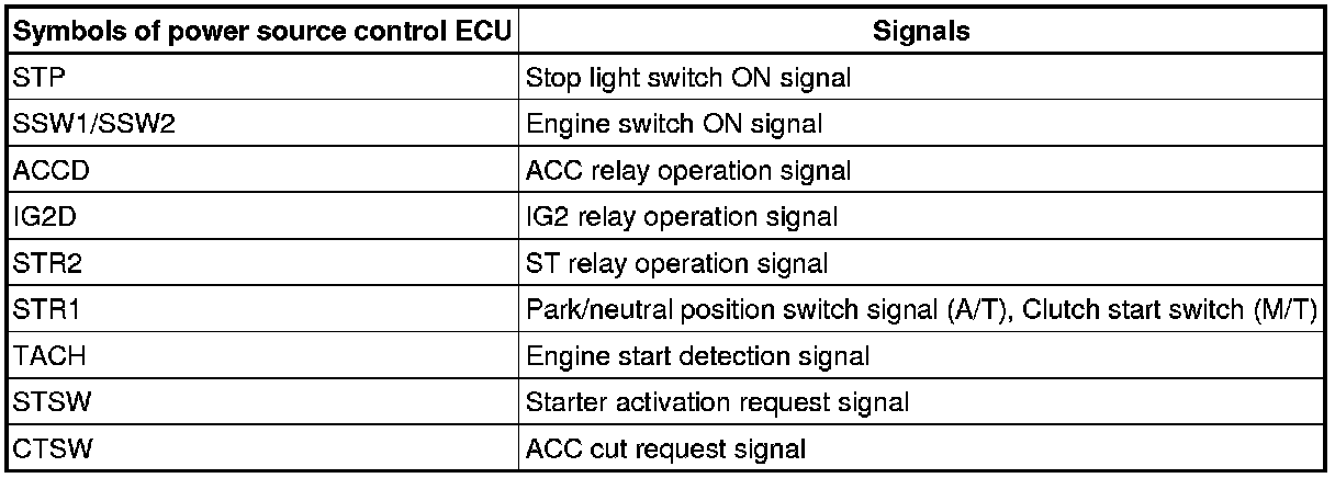 (g) The power source control ECU sends an engine start request signal to the ECM.