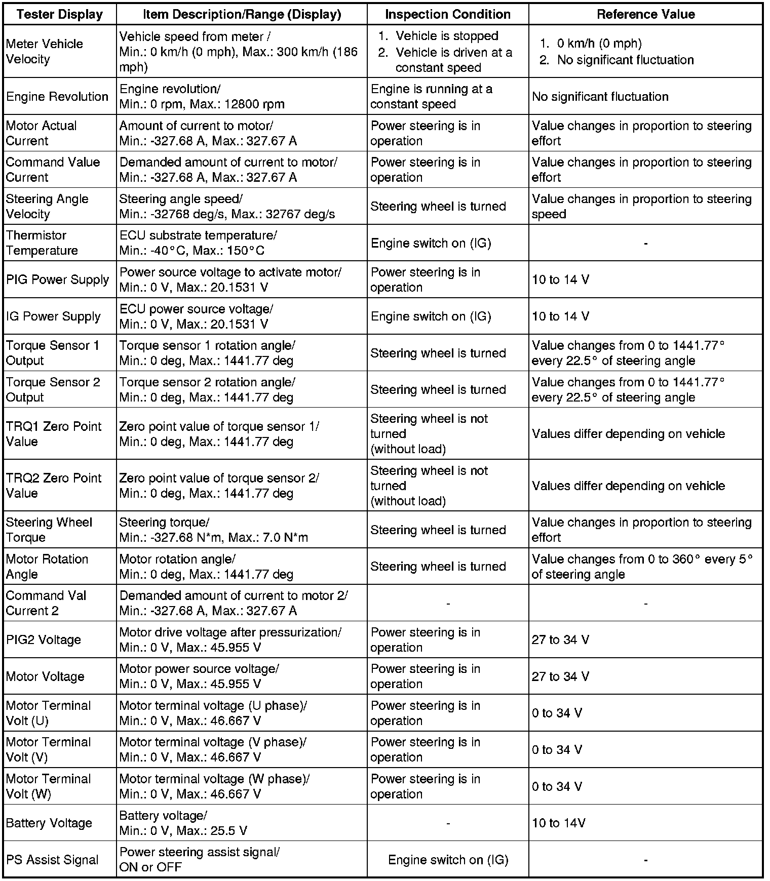 POWER STEERING: POWER STEERING SYSTEM: FREEZE FRAME DATA