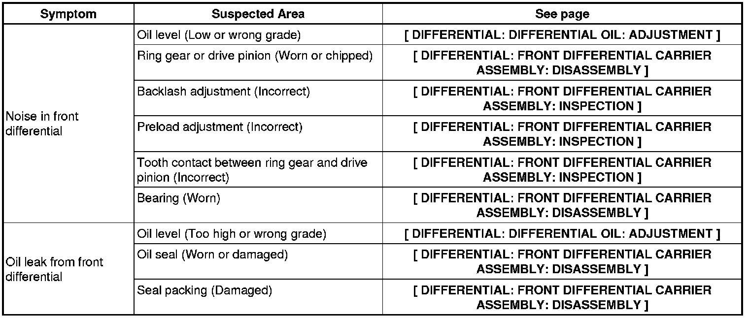 DIFFERENTIAL: DIFFERENTIAL SYSTEM: PROBLEM SYMPTOMS TABLE