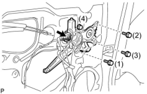 (d) Tighten the 4 bolts in the order shown in the illustration to install the rear door window regulator.