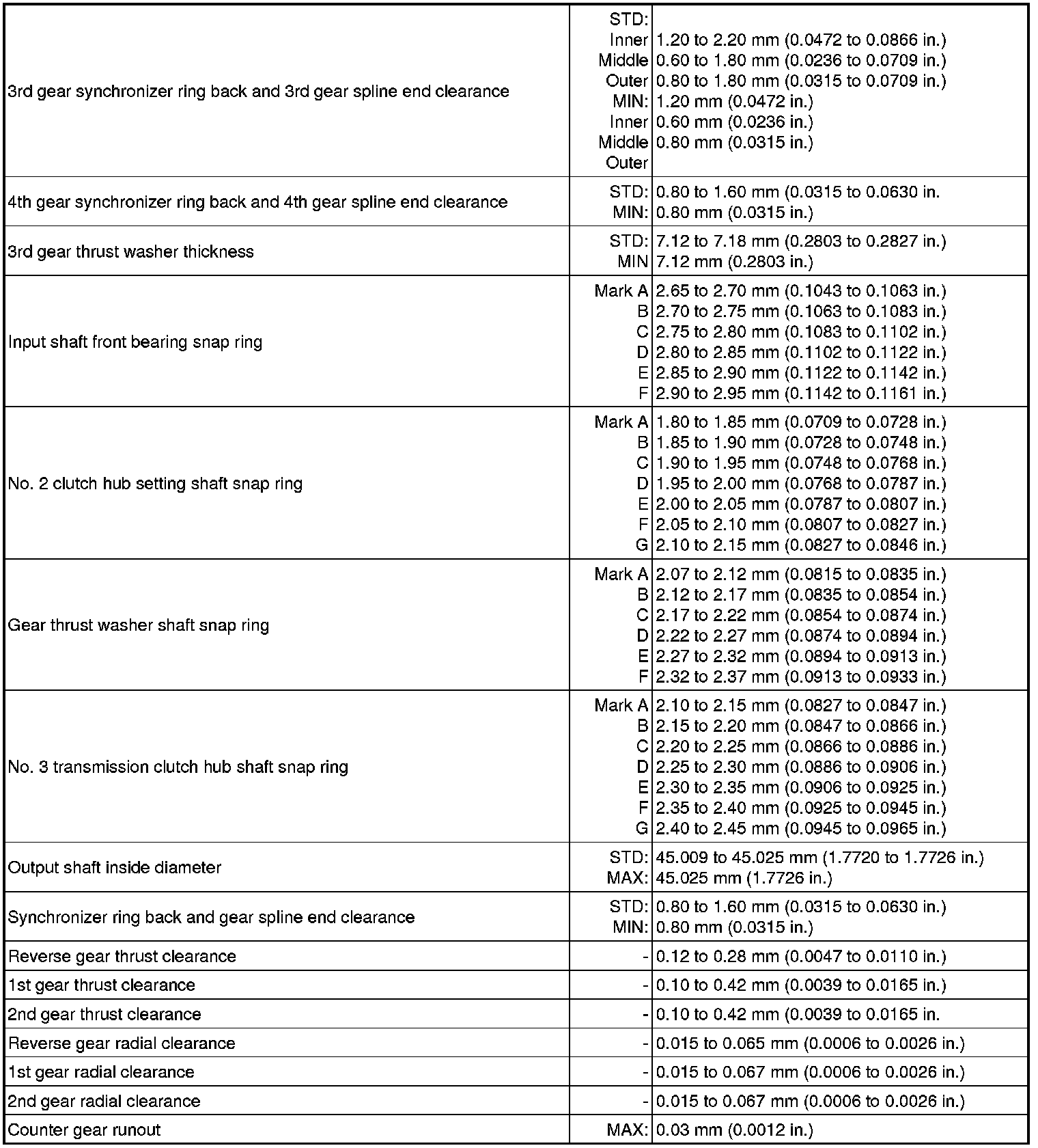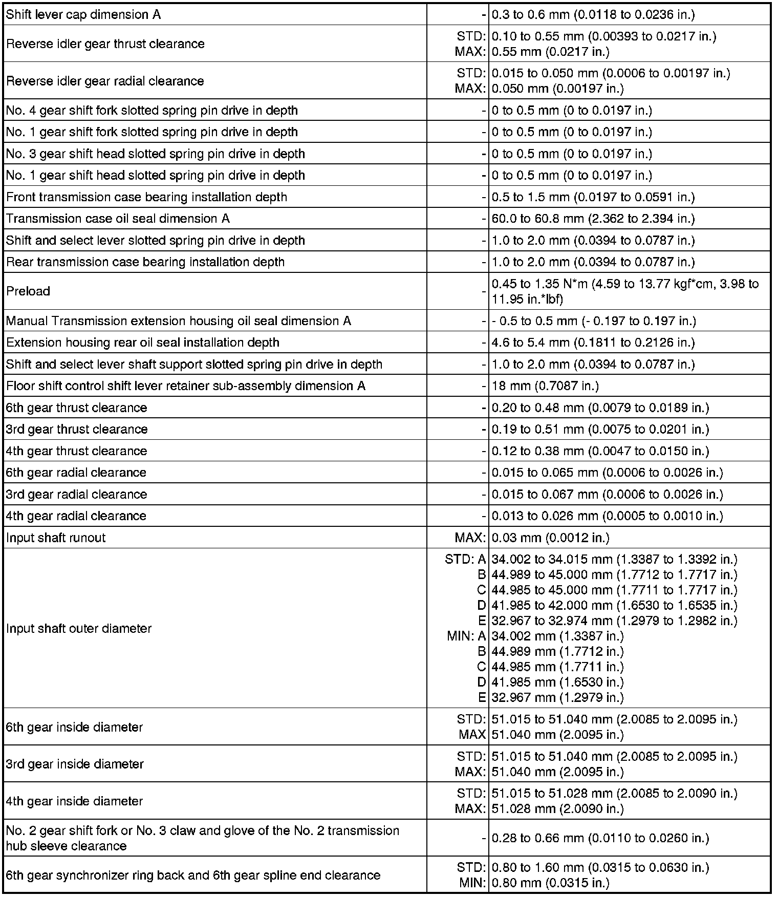 SERVICE SPECIFICATIONS: RA62 MANUAL TRANSMISSION: SERVICE DATA