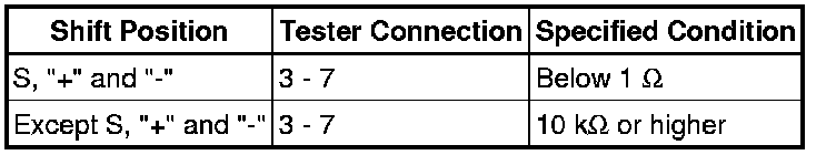 If the resistance value is not as specified, replace the transmission control switch.
