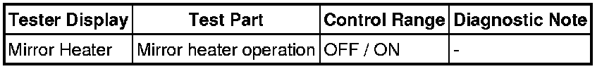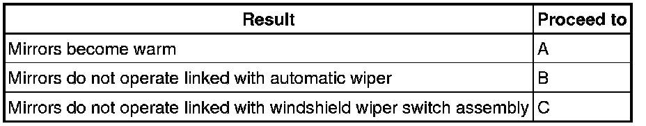 * The mirror heater operation is liked with the defogger system or wiper and washer system. Confirm that these systems are operating normally before starting the inspection.