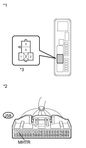 * The mirror heater operation is linked with the defogger system or wiper and washer system. Confirm that these systems are operating normally before starting the inspection.