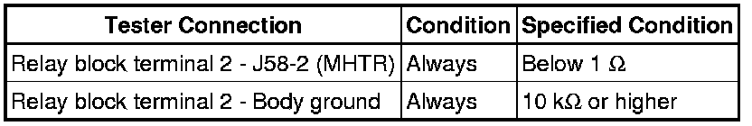 7. CHECK HARNESS AND CONNECTOR (MIR HTR RELAY - BATTERY)