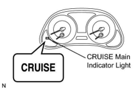 (b) Check that the CRUISE main indicator light illuminates when the cruise control main switch is turned on, and that the indicator light turns off when the main switch is turned off. If the results are not as specified, inspect the CRUISE main indicator light circuit Cruise Main Indicator Light Circuit.
