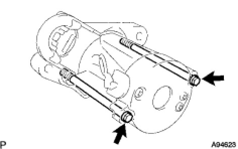 (a) Remove the 2 through-bolts, and pull out the starter yoke assembly together with the starter commutator end frame assembly from the starter drive housing assembly.