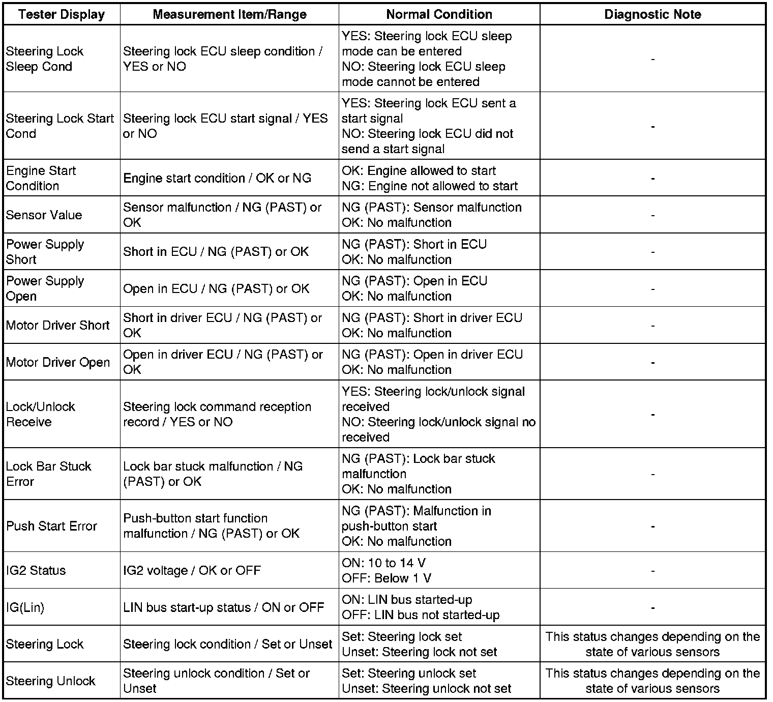 STEERING COLUMN: STEERING LOCK SYSTEM: DATA LIST / ACTIVE TEST