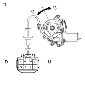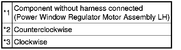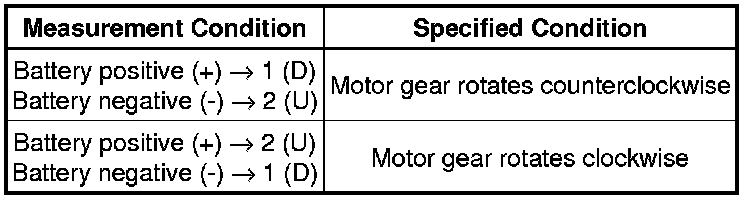 If the result is not as specified, replace the power window regulator motor assembly LH.