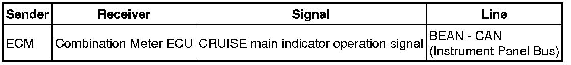 The ECM illuminates the combination meter's CRUISE main indicator light when it receives a cruise control main switch ON signal.