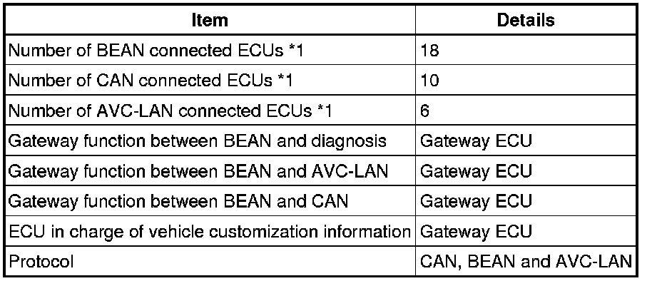 (1) The CAN, BEAN and AVC-LAN protocols have set guidelines for data. The guidelines include communication speed, type of communication wire, drive type and data length. These guidelines are established to facilitate ECU data communication.