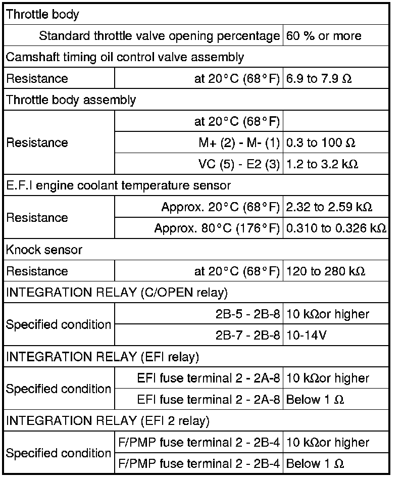 SERVICE SPECIFICATIONS: 2GR-FSE ENGINE CONTROL SYSTEM: SERVICE DATA
