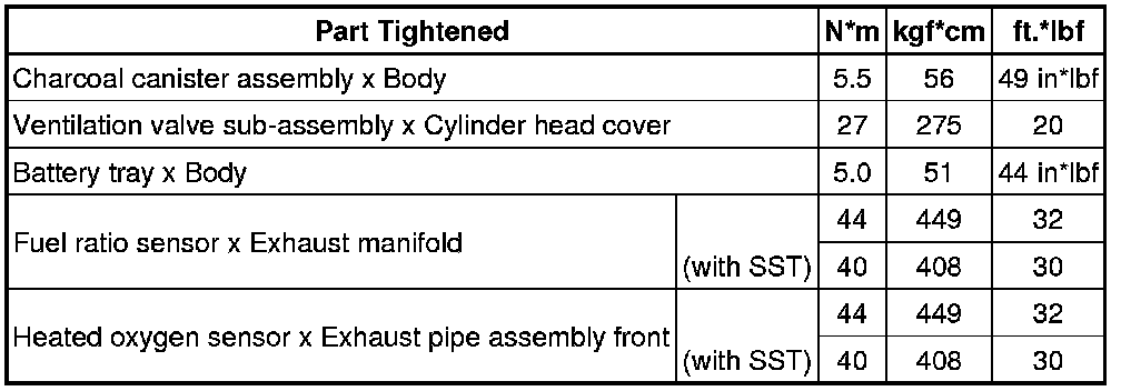 SERVICE SPECIFICATIONS: 2GR-FSE EMISSION CONTROL: TORQUE SPECIFICATIONS
