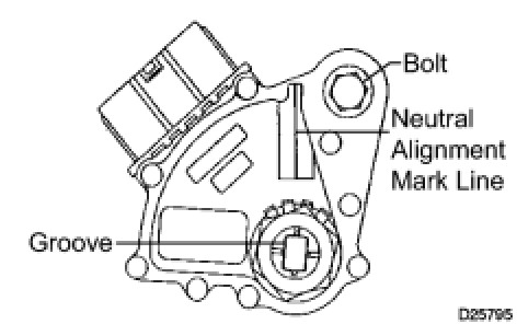(f) Align the neutral alignment mark line with the switch groove, and tighten the bolt.
