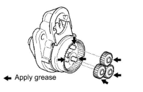(a) Apply high-temperature grease to the planetary gears and pin parts of the planetary shaft, as shown in the illustration.