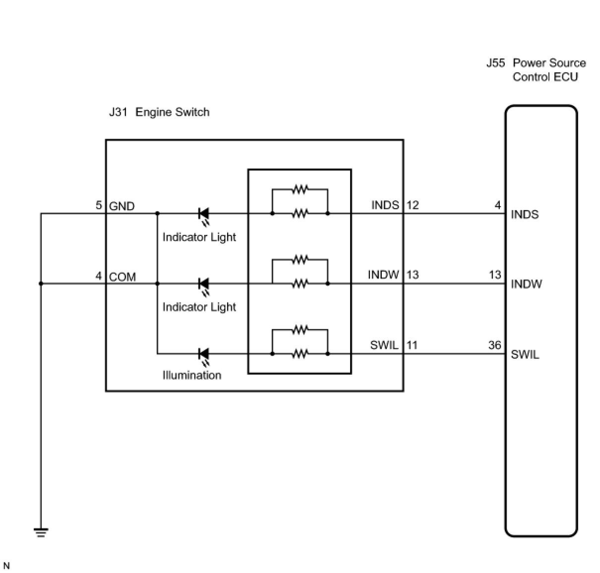 2GR-FSE STARTING: SMART ACCESS SYSTEM WITH PUSH-BUTTON START: Engine Switch Indicator Circuit