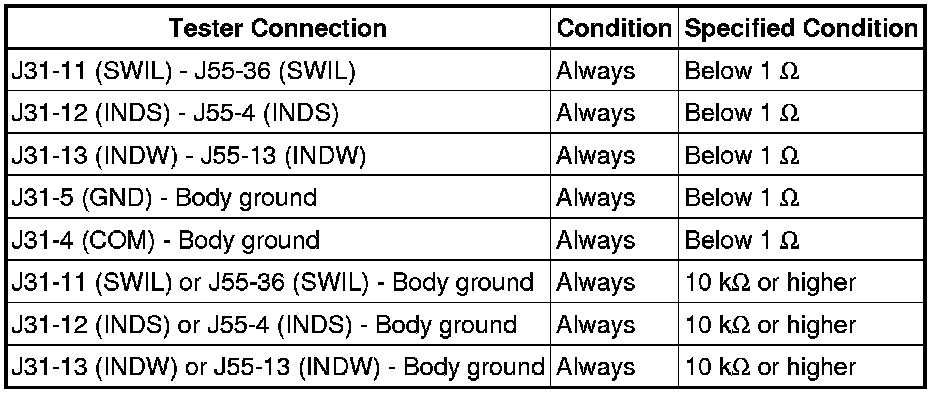 (b) Apply battery voltage between the terminals of the switch, and check the illumination condition of the switch.