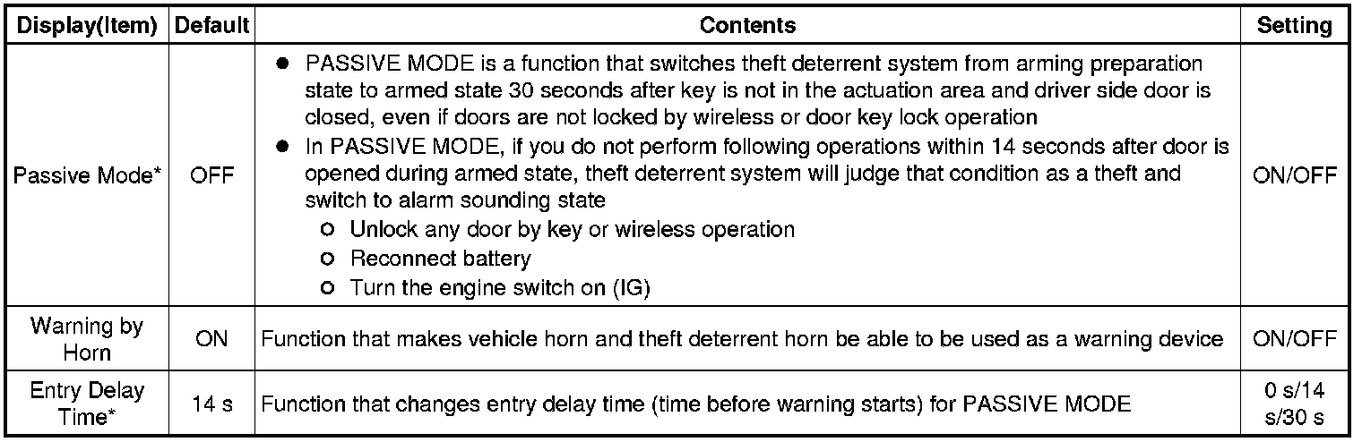 *2: This function is linked with the power window wireless transmitter-linked function. If the power window wireless transmitter-linked function is set to OFF, the sliding roof wireless transmitter-linked function will not operate even when it is set to ON.