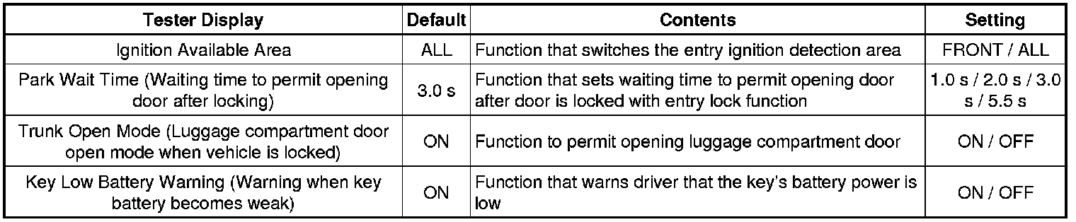 The following items can be customized without using the Techstream.