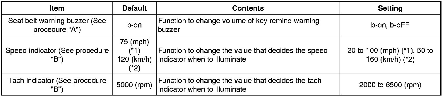 (a) Seat Belt Buzzer ON/OFF setting (Procedure "A")