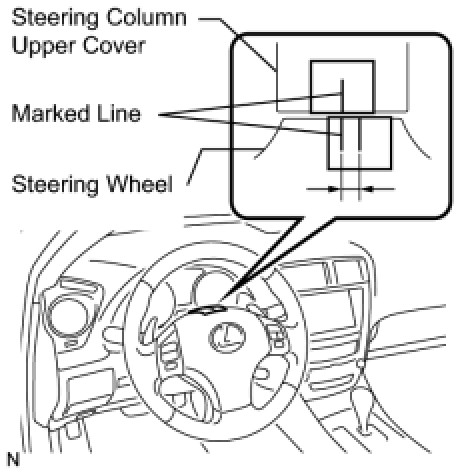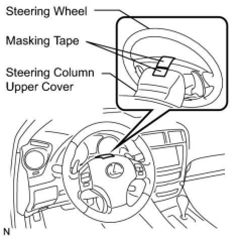 (1) Apply masking tape on the top center of the steering wheel and steering column upper cover.