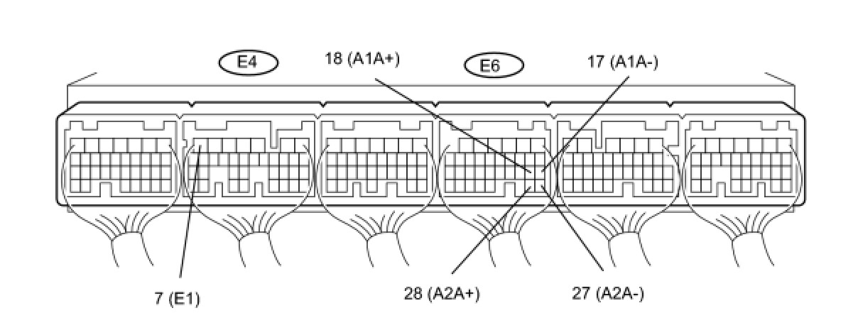 * Connect the tester leads from the backside of the connector. The connector should not be disconnected from the ECM.