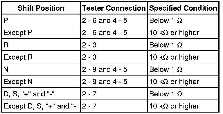If the resistance value is not as specified, replace the park/neutral position switch assembly.