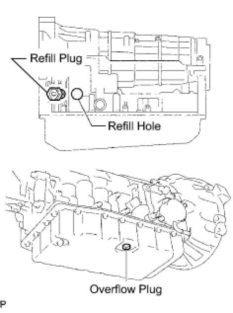 (6) Remove the refill plug and add fluid.