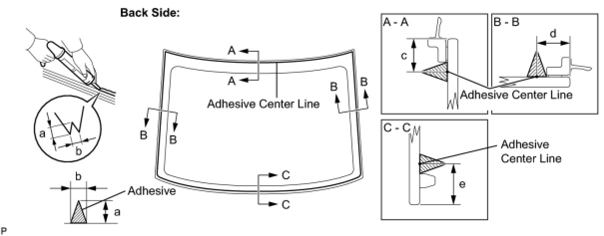 (e) Apply adhesive (Adhesive: Toyota Genuine Windshield Glass Adhesive or equivalent).