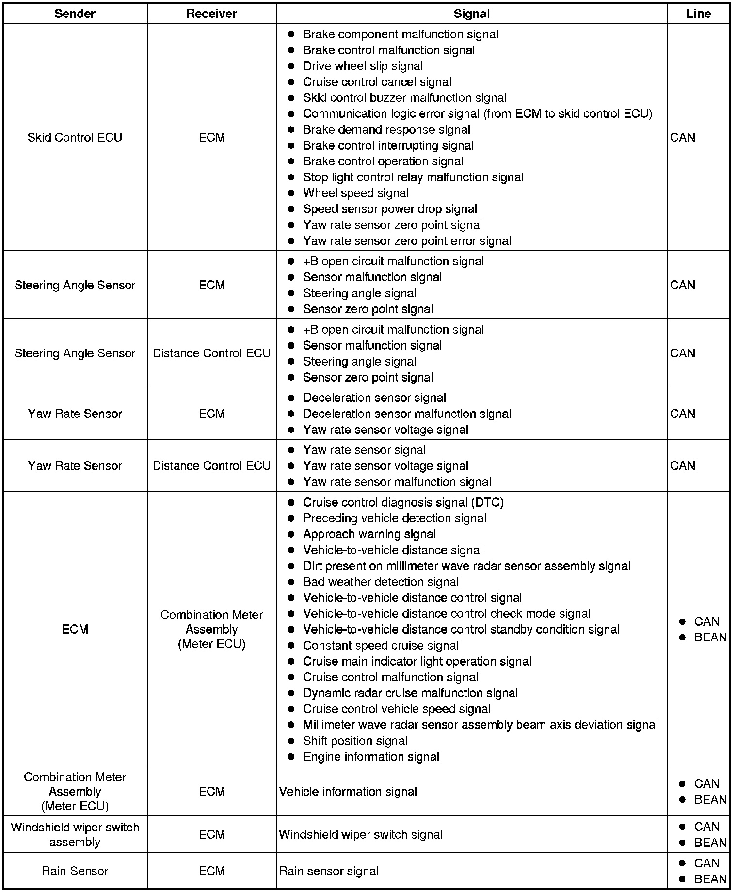 (d) The millimeter wave radar sensor and the distance control ECU control the system while the vehicle-to-vehicle distance control mode is operating, and send signals to each actuator and ECU.