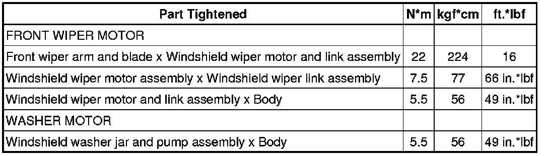 SPECIFICATIONS: WIPER / WASHER: TORQUE SPECIFICATIONS