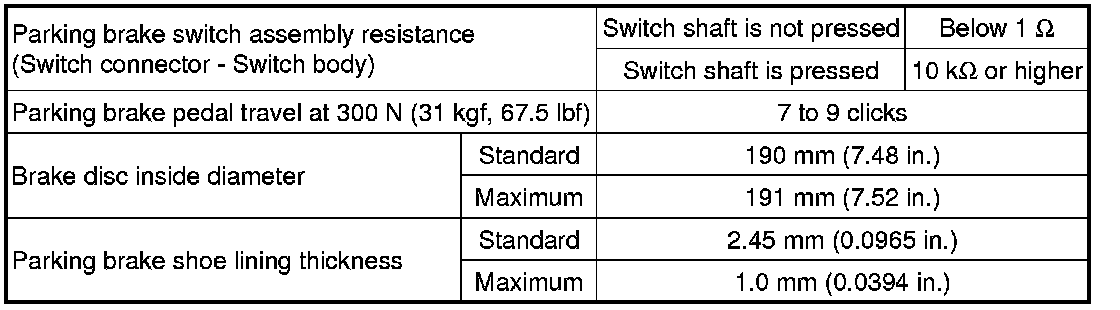 SPECIFICATIONS: PARKING BRAKE: SERVICE DATA