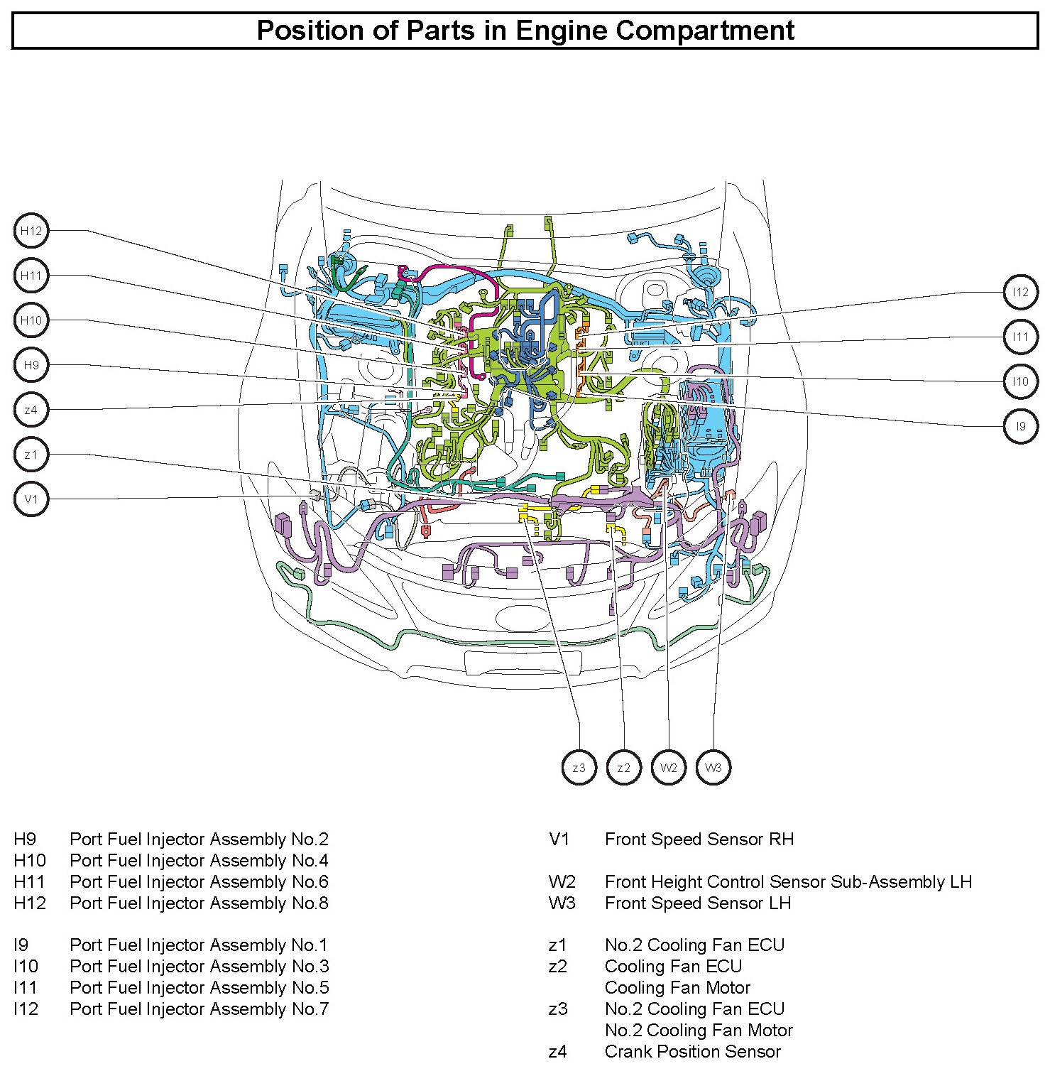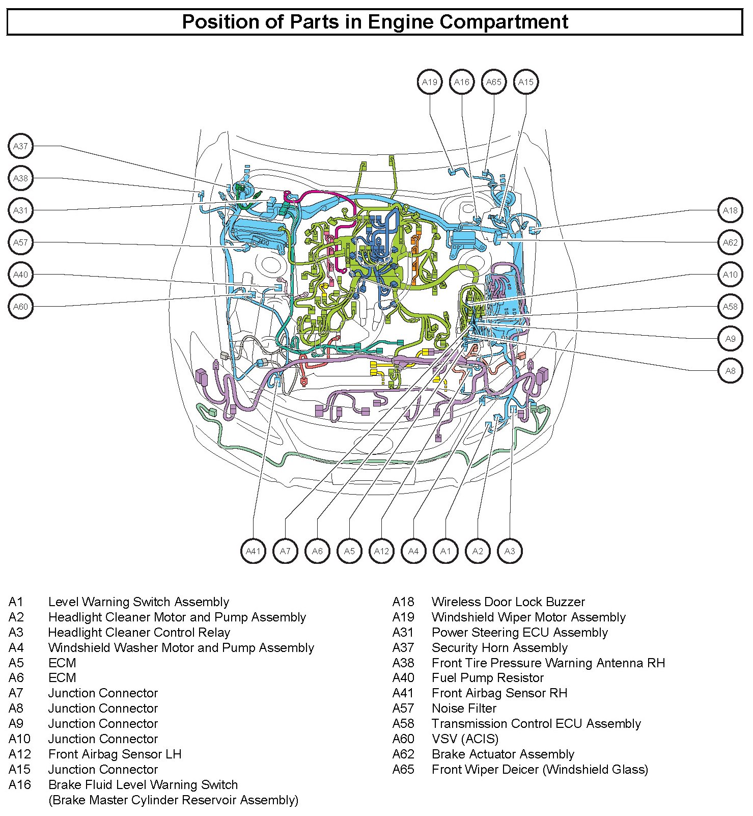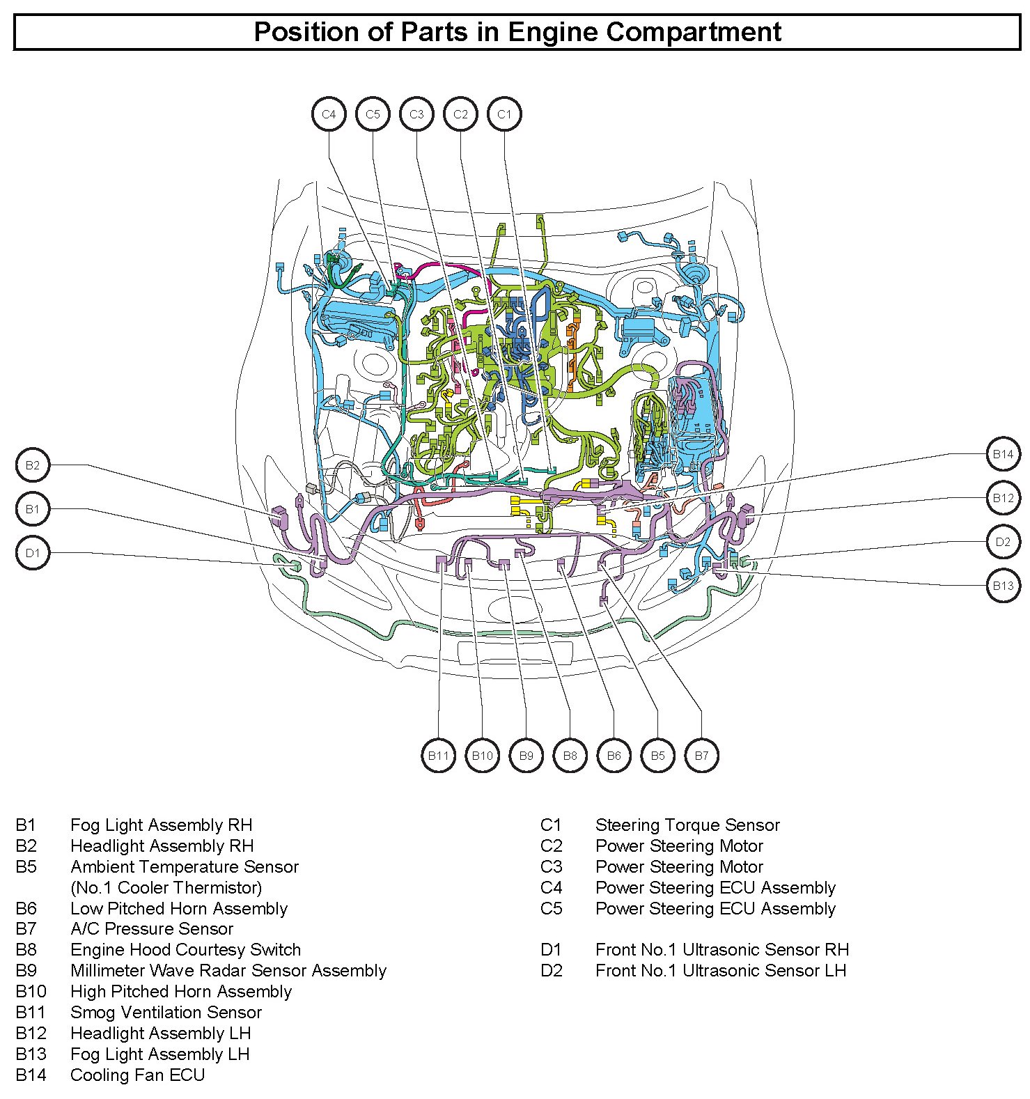 Position of Parts In Engine Compartment