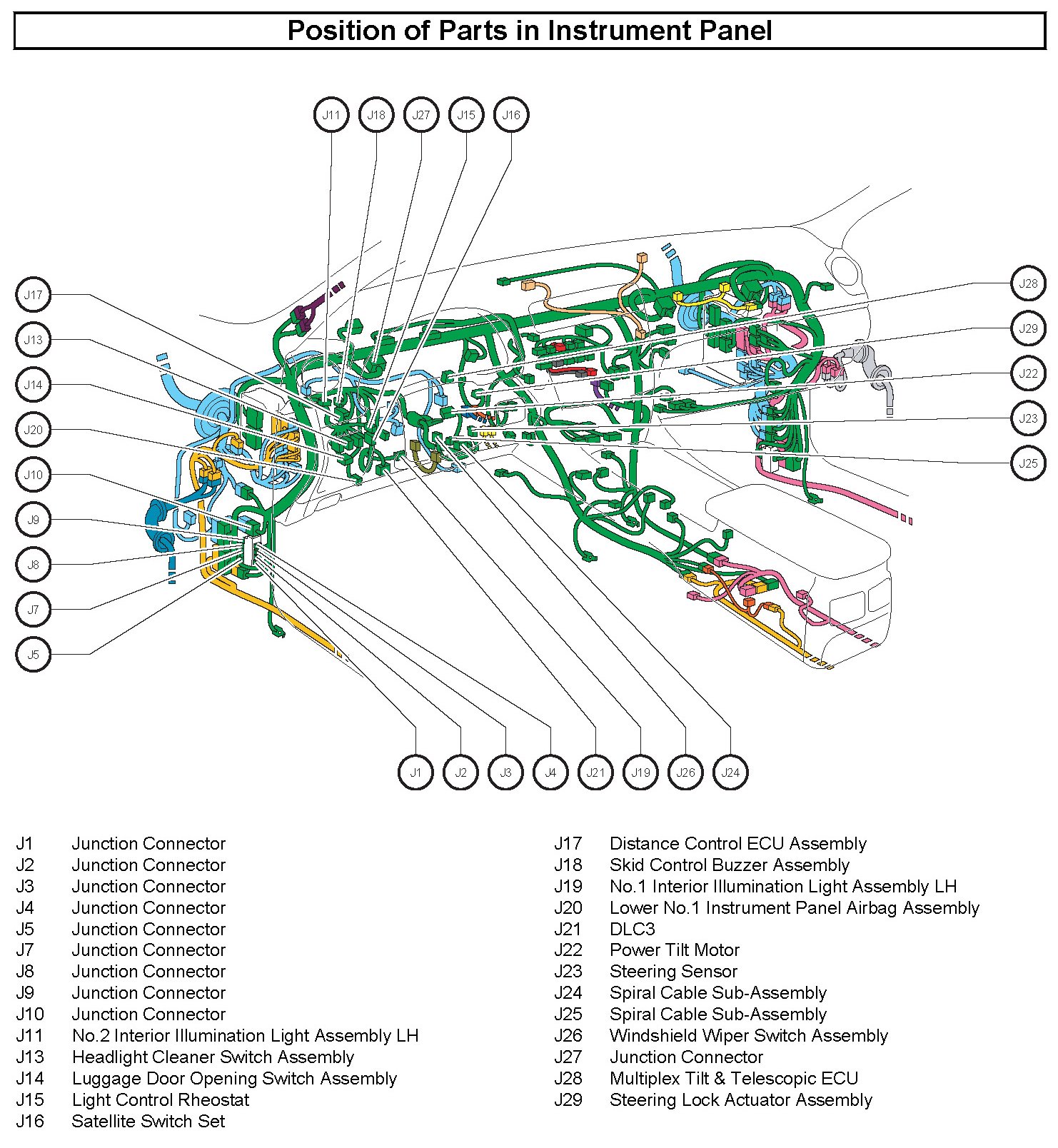 Position of Parts in Instrument Panel: