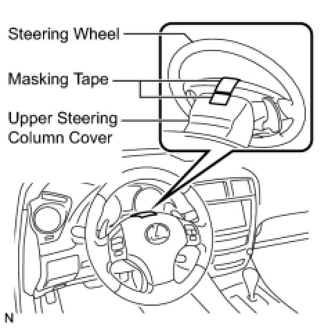 (1) Apply masking tape on the top center of the steering wheel and steering column upper cover.