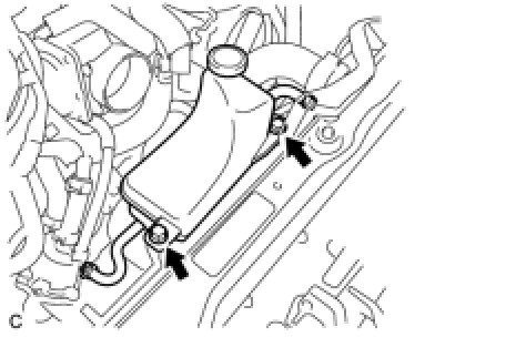 (a) Install the radiator reserve tank assembly with the 2 bolts.