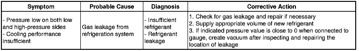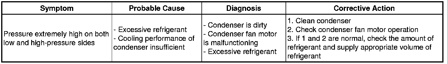 (a) This method uses a manifold gauge set to locate problem areas. Read the manifold gauge pressure when the following conditions are established. Test conditions: