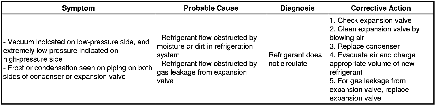 (4) The A/C system does not function effectively due to poor circulation of the refrigerant.