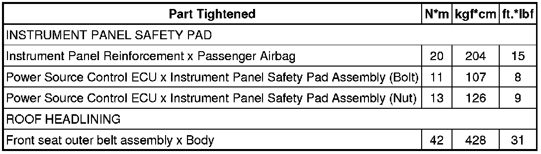 SPECIFICATIONS: INTERIOR PANELS / TRIM: TORQUE SPECIFICATIONS